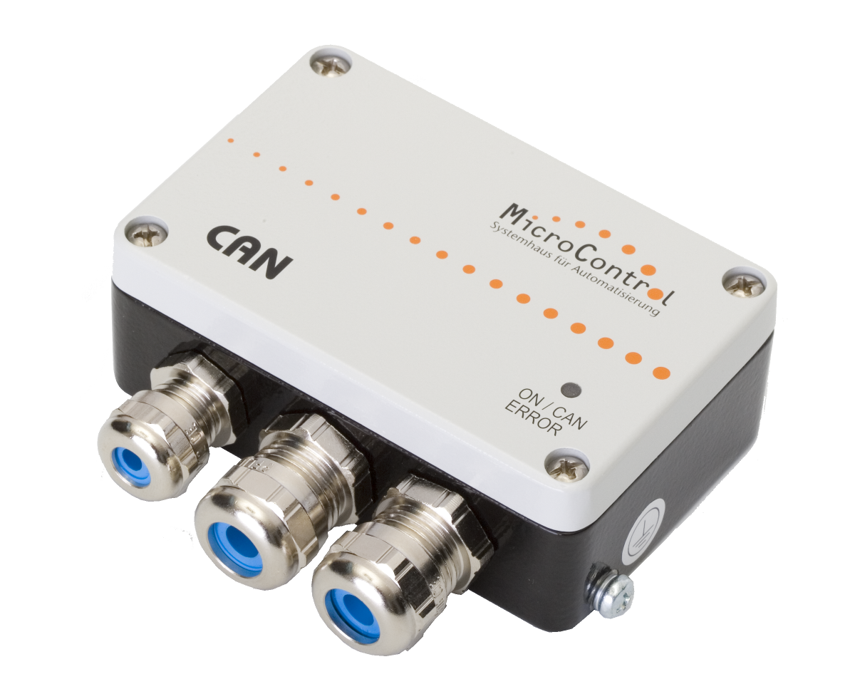 The decentralized measurement data acquisiton module µCAN.1.ti-BOX in protection class IP66 is designed for the acquisition of temperature sensor signals. The µCAN.1.ti-BOX may be installed near the temperature sensor. The signals of the sensor are evaluated within the µCAN.1.ti-BOX and the measured value is transmitted in °C via the CAN interface.