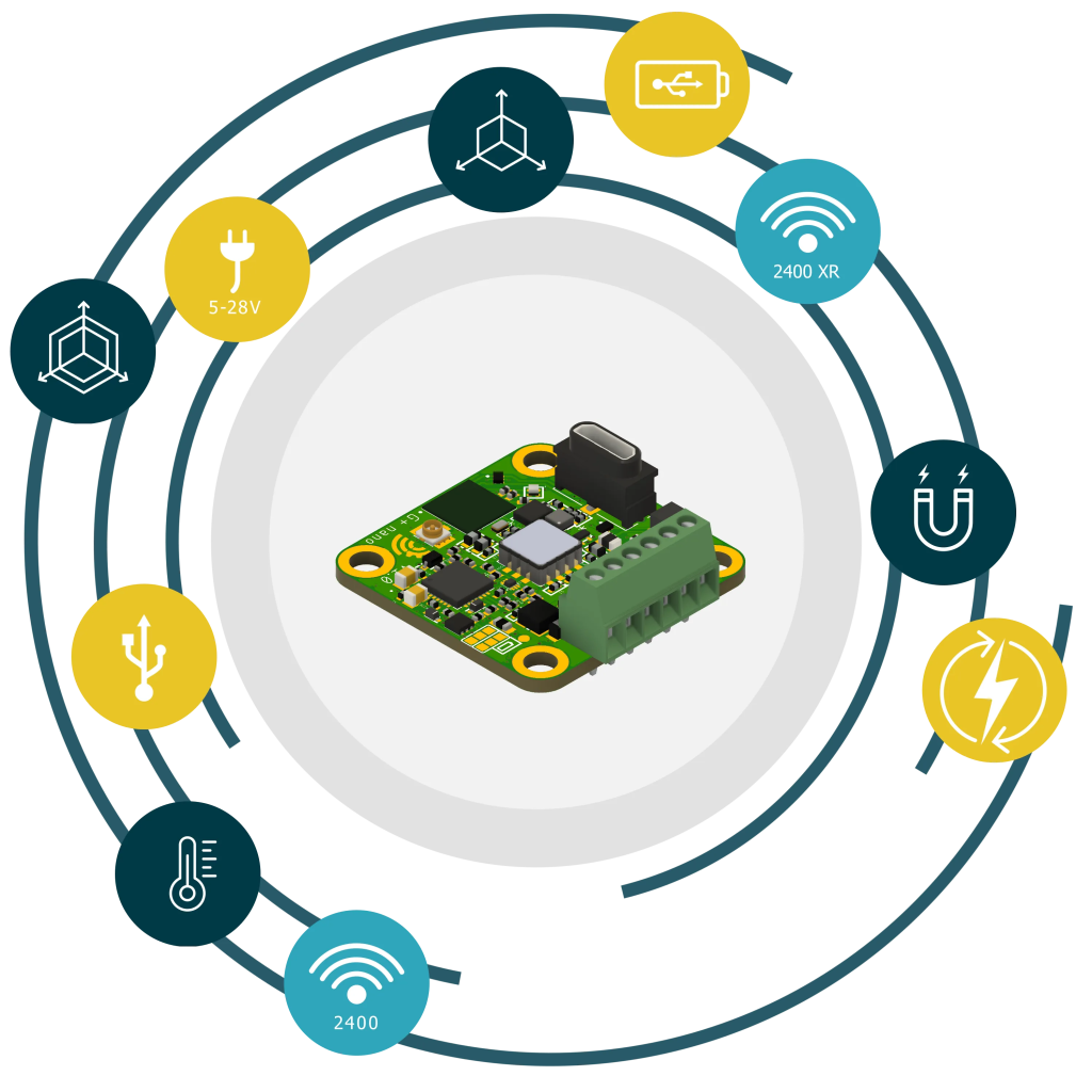 nemi G+ nano is a tiny Integrated Sensing product on board level for wireless measuring vibrations / accelerations, rotation rates, rotation angles and magnetic fields in and around all three axes. Due to the highly efficient nemi Link 2400 radio technology, very long battery runtimes can be achieved. With solar Energy Harvesting battery runtimes can be extended many times over. It is also suitable for permanent installations using a wide-range voltage input or the solar panel (under good conditions).
