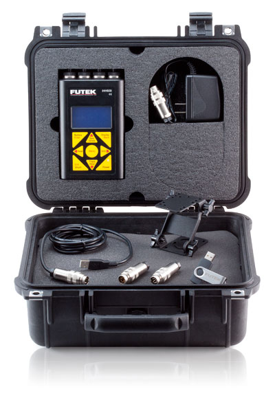 The IHH500 Hand Held Portable Digital Display is FUTEK’s solution that can be easily integrated to work with Load Cells, Torque Sensors and Pressure Sensors. The IHH500 has an input range of up to +/-500 mV/V. Beside the mV/V input, device accepts amplified output sensors in range of ± 12 VDC or up to 30 mA. It also has two individual relays and two Analog voltage and Analog current output. This device provides additional 24 VDC / 5VDC as power supply for sensors with built-in amplifier. FUTEK’s Hand Held display also supports TEDS which makes it easy to switch between different sensors. A high speed/ low noise/ high resolution (24 bits) ADC is integrated in the device to make it suitable for high accuracy measurements. The IHH500 uses rechargeable battery with long life time. This particular Digital Display also has the capability of displaying values onto a computer through a USB link.